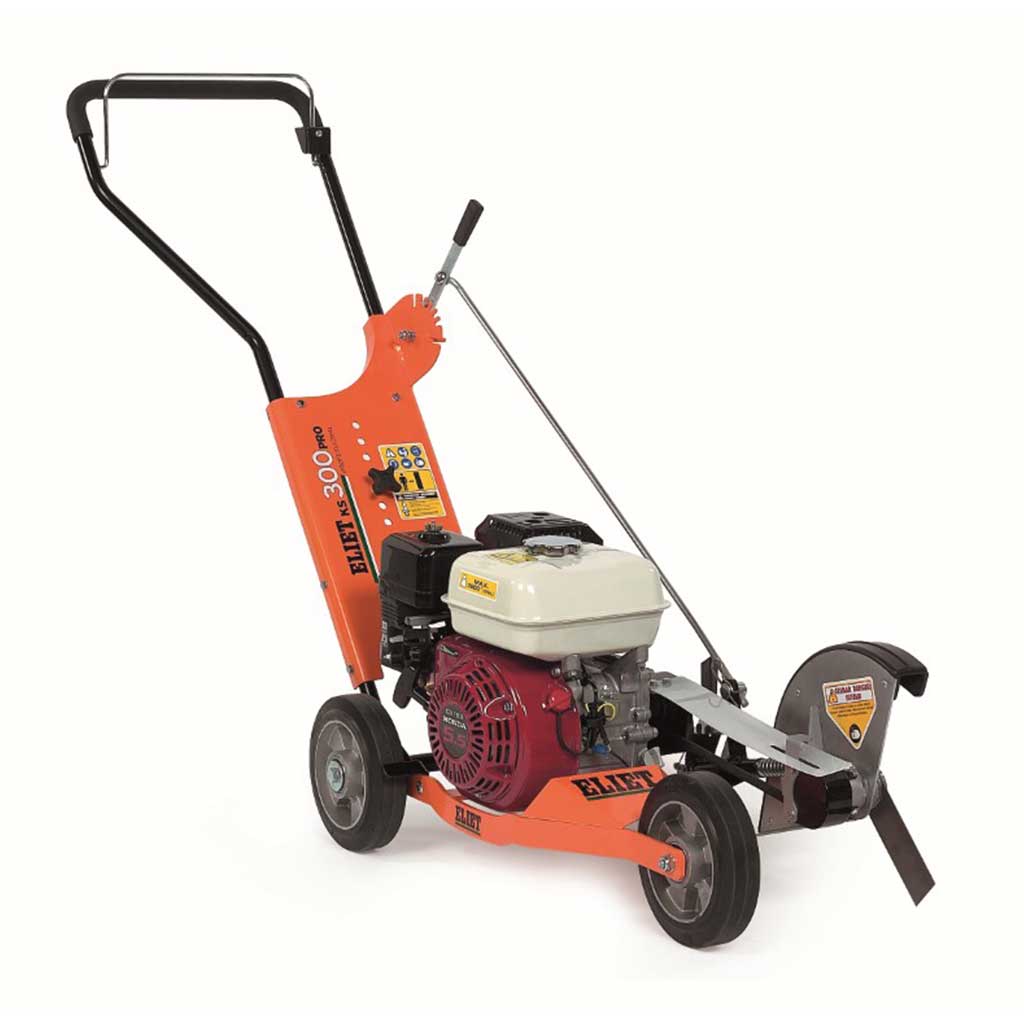 De ELIET KS 300 PRO heeft het grootste snijmes (Ø 300 mm) dat momenteel op de markt te vinden is, biedt daarnaast de beste ergonomische werkomstandigheden. Met 7 hoogtestanden kan de bediener steeds het stuur op de ideale handhoogte zetten en voldoende beenruimte creëren. De speciaal gevormde rubberen afschermkap rond het mes vermijdt elke steenslag naar de bediener.